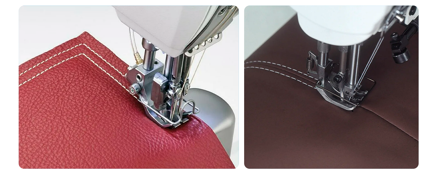 Промышленные двухигольные машины предназначены для создания двух параллельных строчек за один проход, что обеспечивает дополнительную прочность и эстетичность шва. Эти машины применяются для шитья джинсов, спортивной и рабочей одежды, кожаных изделий, обивки салонов автомобилей и мебели. Они работают с высокой скоростью и обеспечивают равномерное качество шва. Расстояние между игл регулировать с помощью доп. игольных комплектов.